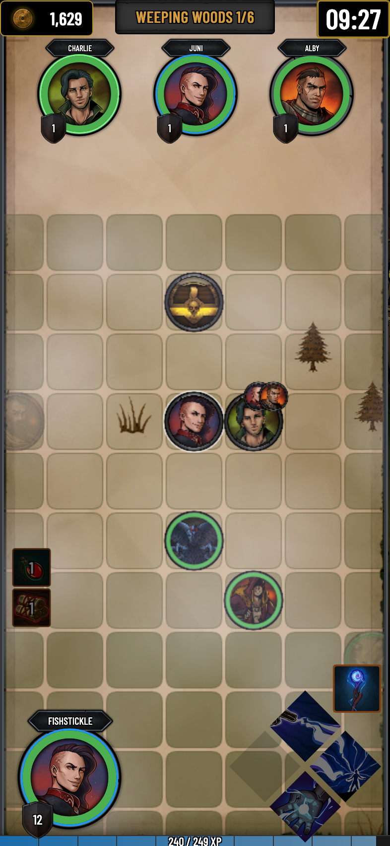 The central game board presents a grid-based tactical view of your current area. Click any accessible tile to move or interact with objects and entities:
